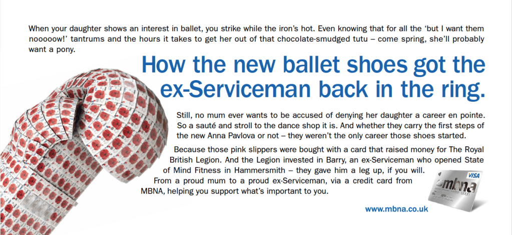 Usually, a credit card ad is full of Ts and Cs. So it was very refreshing to have a brief land on my desk from MBNA, who simply wanted a branding ad – rather than sell a specific credit card.
