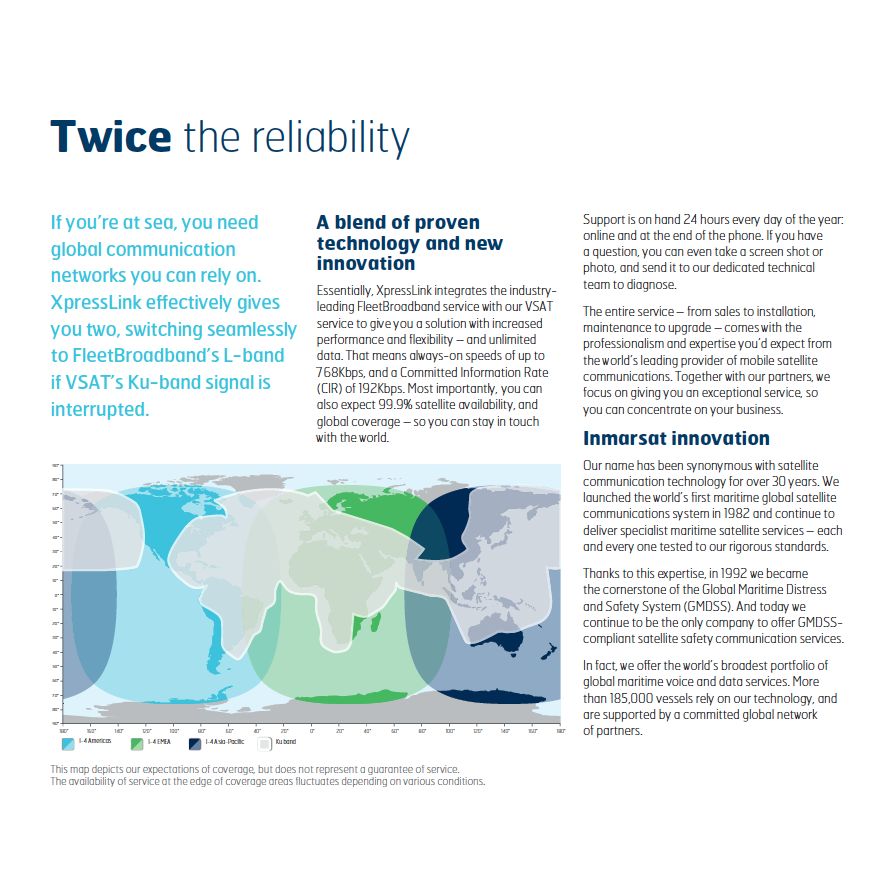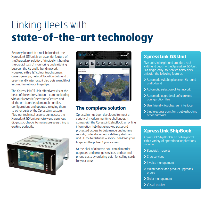XpressLink is Inmarsat’s leading edge satellite communications package. Designed principally for large ships around the world, it gives their teams access to fast internet connections – not just for navigation and data, but also for video calls to friends and family.